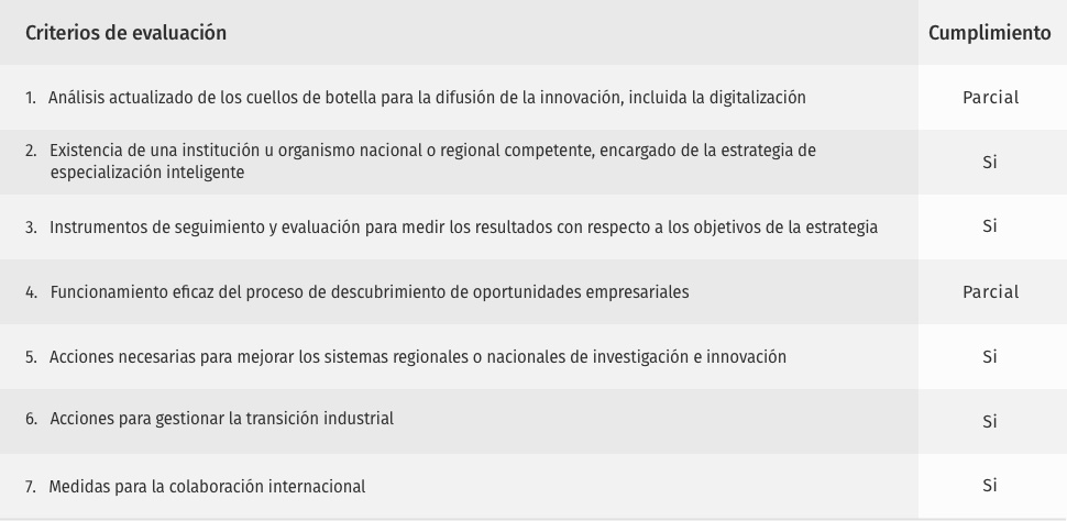 La RIS3Andalucía 2014-2020 presentaba ya en 2019 un alto grado de cumplimiento de los siete criterios para esta Buena Gobernanza, conforme al análisis realizado en la Evaluación Intermedia: